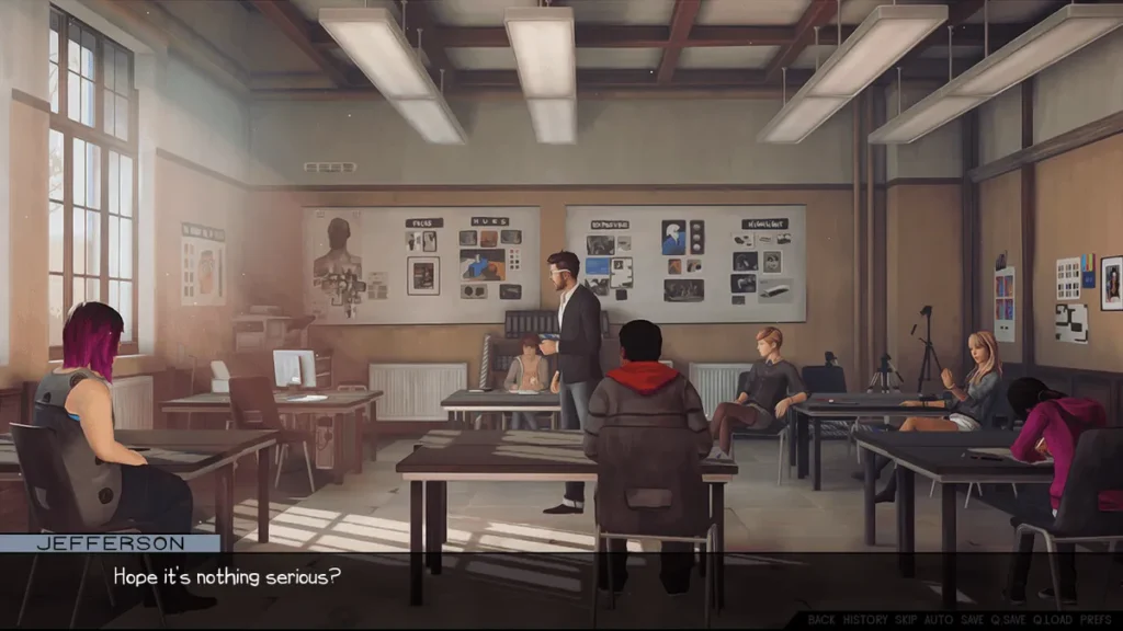 The visual novel interactive choices are the backbone of the experience. You’re not just picking “Nice” or “Mean” responses. Dialog options are nuanced, reflecting curiosity, suspicion, flirtation, or authority. The game brilliantly hides a morality system behind natural conversations. You might think you’re just making small talk, but you’re actually building trust, planting ideas, or accidentally revealing your own secrets. The dialogue navigation is intuitive, with a clean interface. On touchscreen devices, you can often swipe to advance text, which makes reading feel fluid and natural.