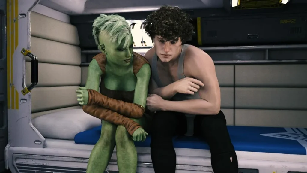 A compelling narrative needs a believable world to live in, and Tales from the Unending Void delivers this with stunning visual novel renders animations. The game features over 5,000 high-quality renders that build its gritty, lived-in sci-fi universe. The characters are a particular highlight, designed with an impressive attention to detail. The human and alien female characters are rendered with realistic features and job-appropriate attire that reinforces their roles—from practical flight suits to more ceremonial uniforms—adding a layer of authenticity.